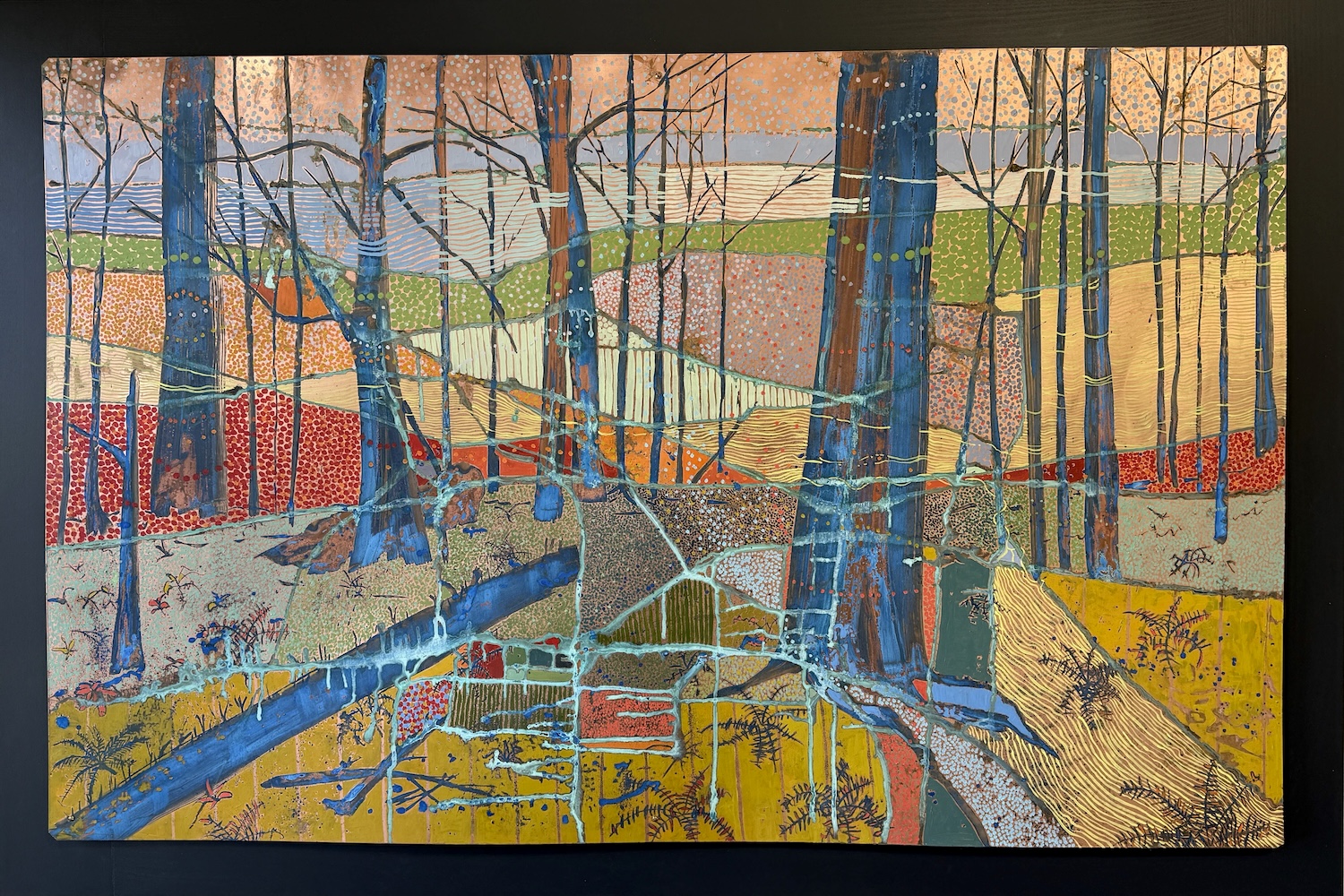 Vibrant Woods, 36x36, oil and patina on copper, framed