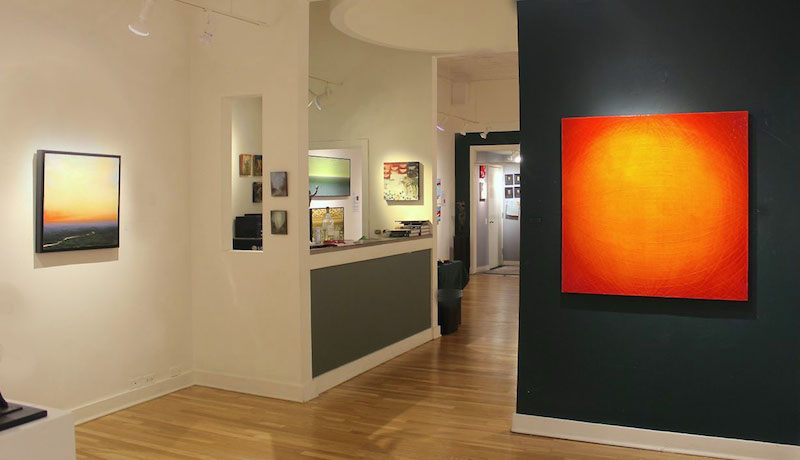"All Terrain: Landscape Exporations" features the work of Julie B. Montgomery, Diana Cutrone, Paula Blackwell, Joan Holleb, and Karen Perl This group exhibition showcases the work of four painters that use a variety of media to explore the subject that intrigues and moves them most: nature and the landscape. This exciting installation of paintings reveals the breadth of possibilities that the landscape subject offers both contemporary artists and viewers alike. Julie B. Montgomery distills the poetry embedded in our natural world. Atmospheric, subtle, almost ephemeral, these paintings whisper quiet truths about color, space, light, and form.