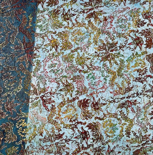 Cat Crotchett is an innovative practitioner of pattern-based abstract painting. Using the medium of wax and pigment (encaustic painting), Cat's visual vocabulary includes stenciled shapes, layered patterns, and burned-in texture accomplished using heated metal much like a branding iron. Cat uses a bold but sophisticated color sense to engage the eye, and creates a sense of complexity through built up textures and layering. The results are color fields that feel at once organic and man made, rich with detail and incident. The complexity of her surfaces and the tactile nature of her work engage both mind and body, ensuring that we will always find new elements in these paintings as they unfold and reveal themselves over the course of multiple viewings.