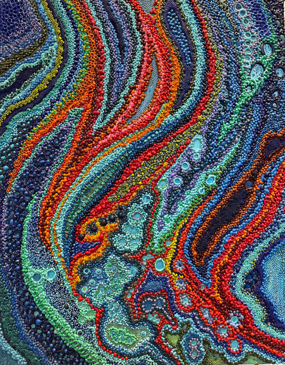 Rebecca's recent encaustic paintings merge an interest in process and the encaustic medium with an organic, almost three dimensional approach to developing a composition. Images that seem to reference nature are the accumulation of thousands of little points of pigmented wax applied in layers. The image seems to simultaneously form and dissolve, and speaks to the mutable and atomically fractured nature of our physical environment. With a technique that recalls the repetitive creation of weaving and textiles, Stahr creates images that can be read both as surface and image. Says Rebecca about her work: "My paintings often feel like imagined emotional inner landscapes. They are born out of a larger contemplative practice rooted in experiencing the sacred connectedness in our natural world, the beauty of impermanence and the cycles of life and nature. The paintings becomes a record of that journey and as well as a path of healing and deeper understanding of the beauty of humanity's imperfection. |
